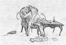 Lights are dimmed, and the reader either reads by candelight or by one small lamp, creating a "reading by the campfire" effect. It is tradition for the reader to give a brief disclaimer, usually about writer's block or some such thing, and then begin reading when the audience yells out, "Declaim!" After the reading, the guests applaud, and the reader picks the next reader. Then the process begins again, and afterwards THAT reader picks the next reader until all the guests have read. Depending on the length of each reading, there is usually a 10-15 minute break for every three to four stories read. It is okay to eat and drink during the reading provided that the guest is respectfully quiet and listens to the reader.
